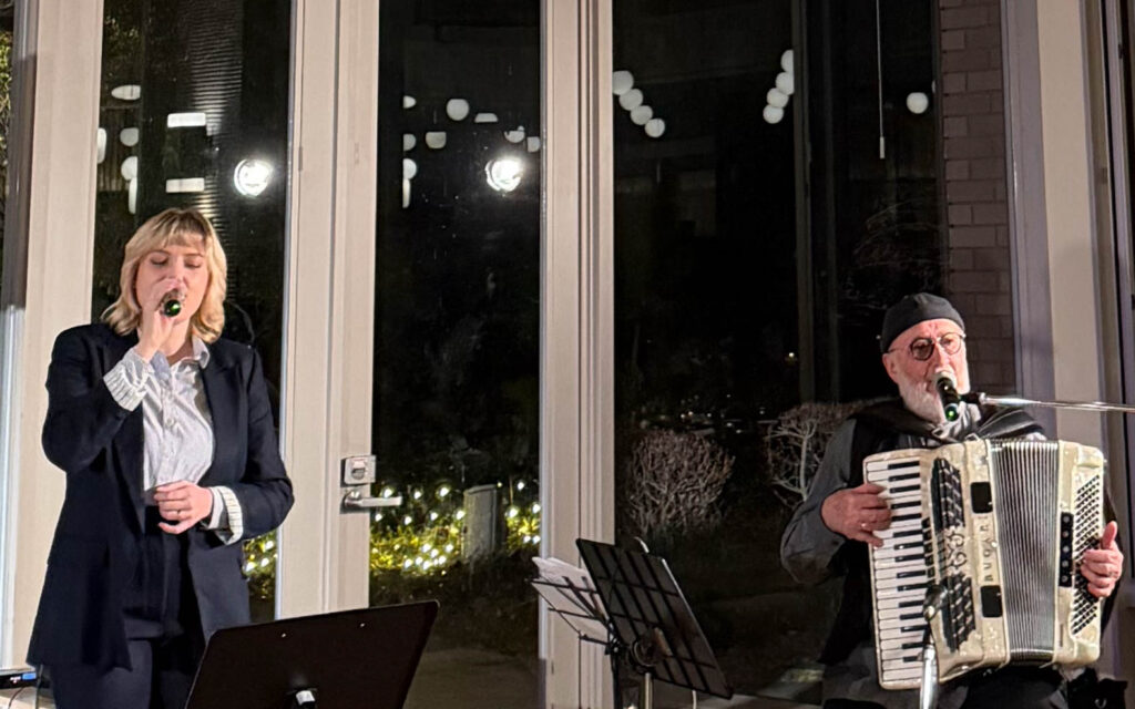 シャンソンとアコーディオンの生演奏で、気分を盛り上げてくれました。