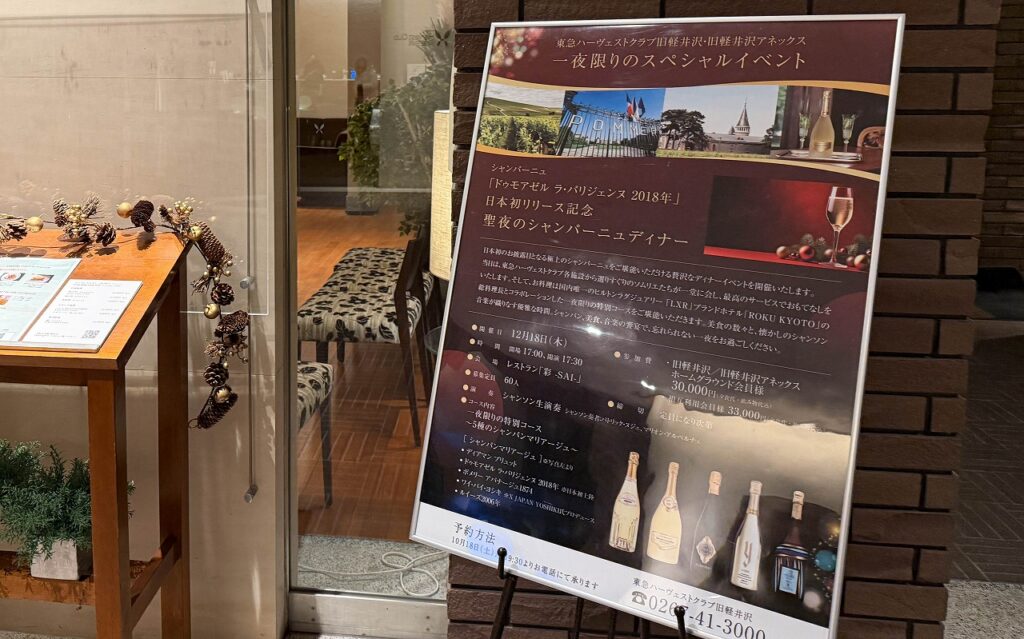 12月18日に開催されたポメリーのシャンパニューディナーに参加しました。ポメリー・ジャパンと深い取引のある東急ハーベストクラブによよって企画された『「ドモワーゼル・ラ・パリジェンヌ2018年」日本初リリーズ記念 聖夜のシャンパーニュディナー』というイベントです。旧軽井沢の東急ハーヴェストクラブで開催されました。