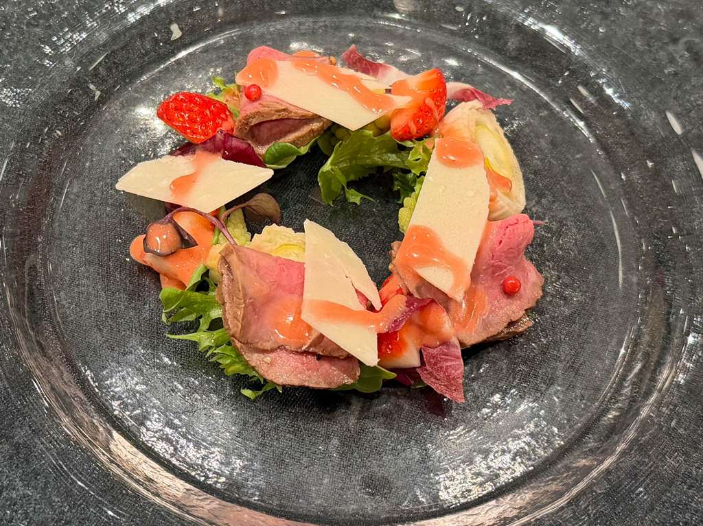オードブル「信州牛もも肉 軽井沢産いちご 白樺の樹液」