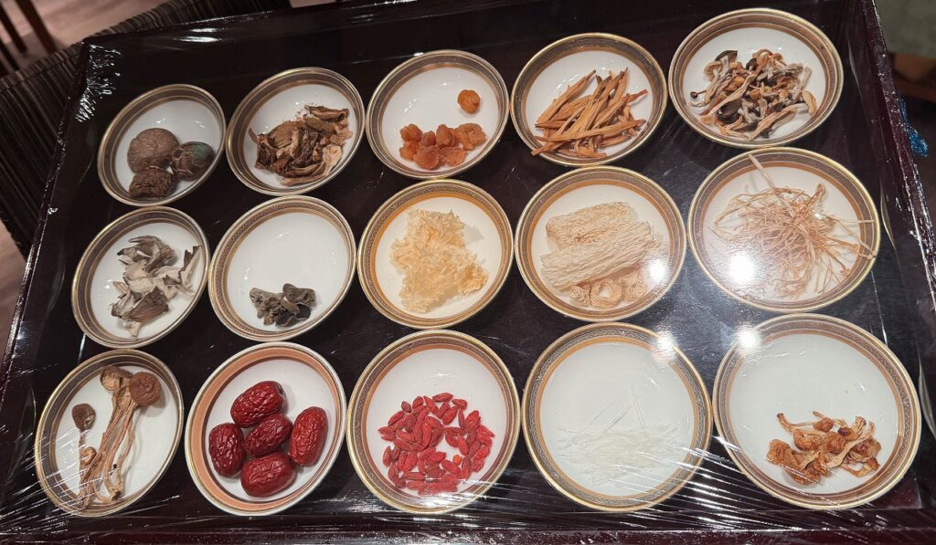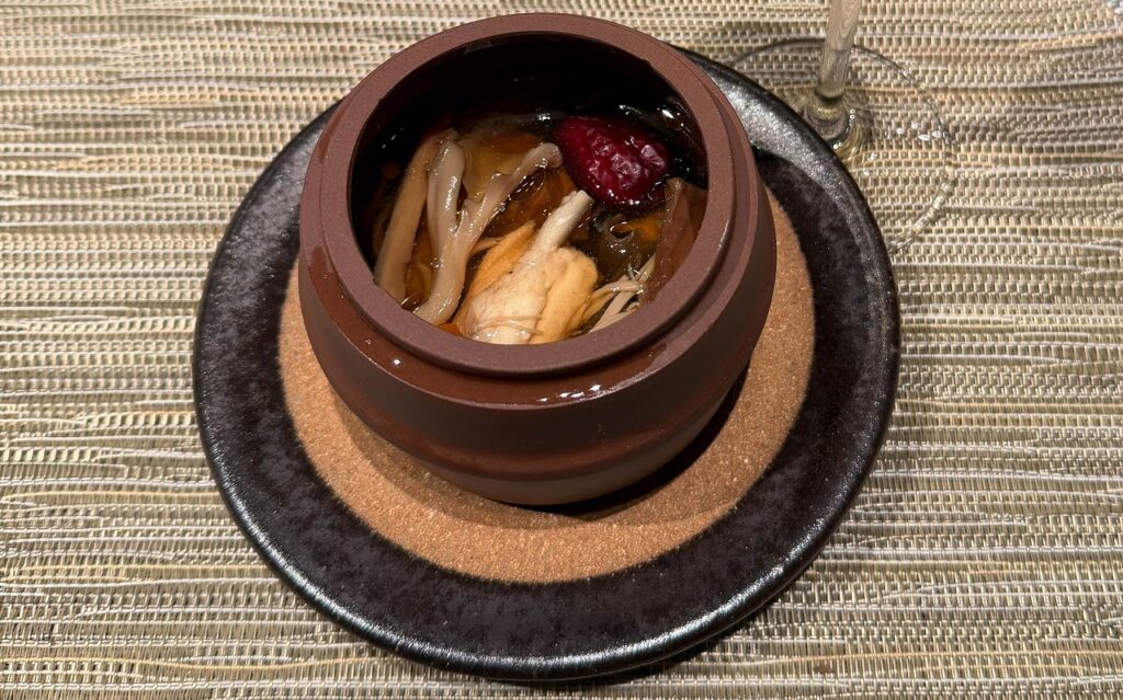 陳皮や桂皮等の生薬の香り、鶏やキノコからの旨味、ナツメやクコの甘く温かい香り。エキゾチックなニュアンスと清涼感、旨味が交じり合う不思議な風味です。