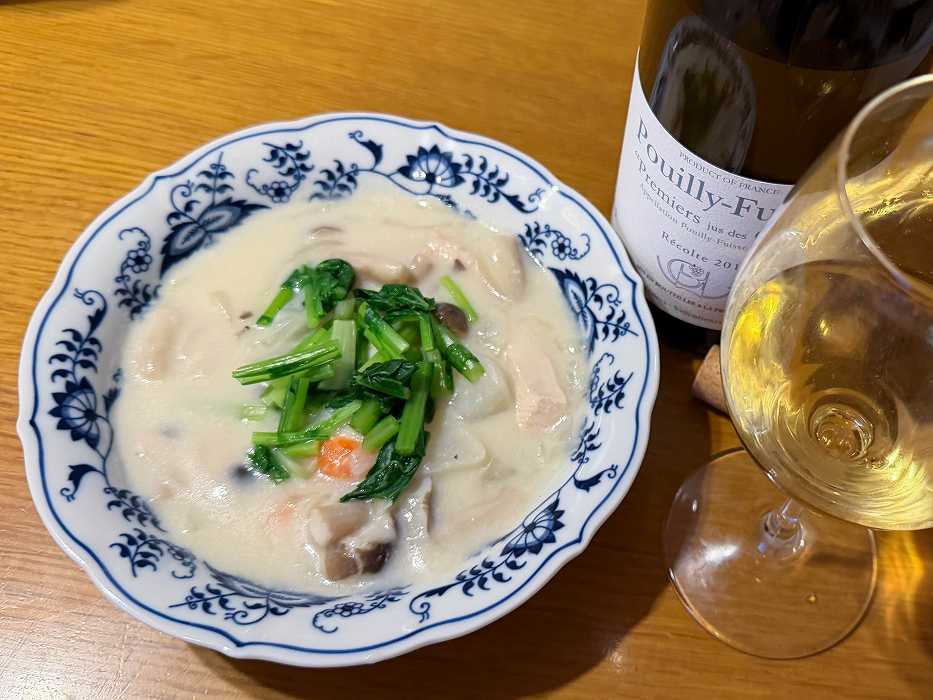 このワインは、鶏肉のクリーム煮と合わせました。2日目に合わせた牡蠣フライも相性はバッチリでした。