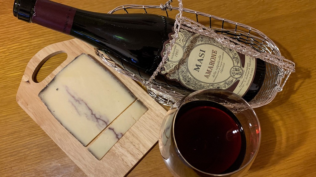香りは確かに甘やかな赤ワインの香りですが、正直、意識しなければアマローネとは分かりません。熟成アズィアゴ(モンテ・ベロネーゼかもしれません)のコクと優美なアマローネの香りが調和しており美味しいチーズです。もちろんアマローネとの相性は抜群です。もう少し安く、入手が容易であれば、リピートしたいのですが…
