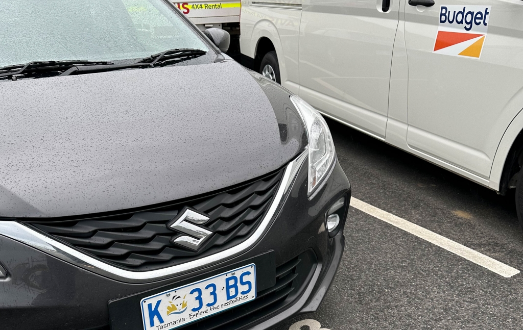 地方空港ということもあり、レンタカーの駐車場は空港のすぐ前にあります。オーストラリアは、日本車のシェアが非常に高いですが、最近のレンタカーの最安は韓国車のようです。とりあえず、日本車最安のスズキのSwiftを選びましたが、インド製でした。
