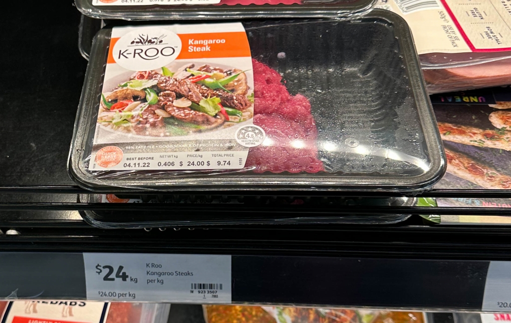オーストラリアらしいのがカンガルーの肉です。こちらは、24$(2400円)と牛肉の倍以上の価格です。