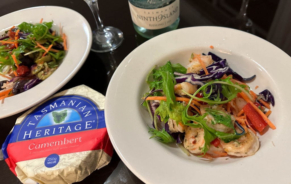 シュリンプ炒めとあわせてタスマニア産リースリング。NINTH ISLANDというワインです。全く知りませんですが、後で調べたら日本にも輸出されているようです。2021年産で、さわやかな白い花と柑橘系の香りに溌溂とした酸、フレッシュでエレガントな白ワインです。