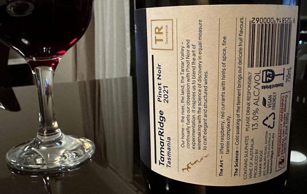 ↓TamarRidge(テイマー・リッジ)というワイナリのピノノワールワインです。名前が示すとおり、タスマニアで最も有名なワイン産地、Tamar Valleyのワインです。日本に輸入されているかは不明です。少なくとも見たことはありません。