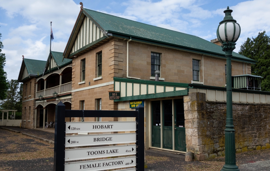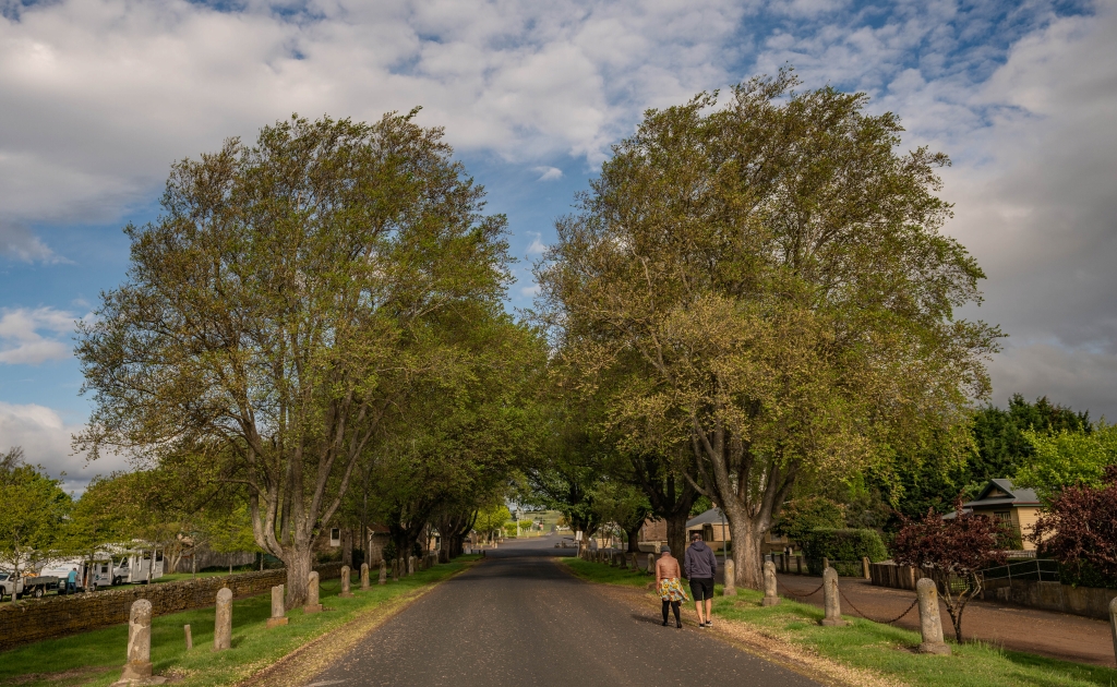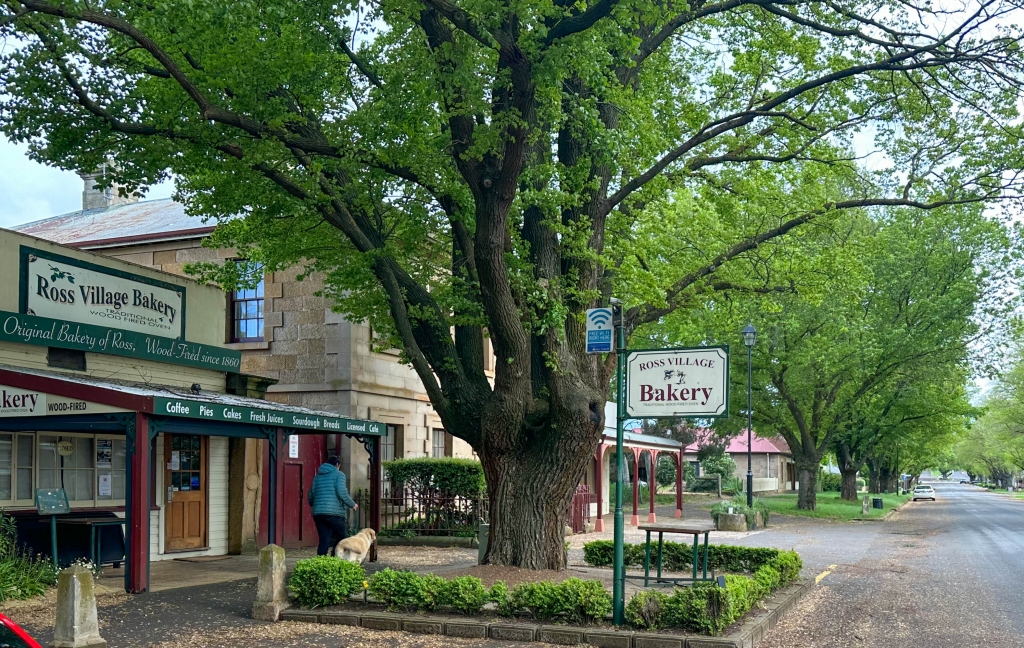来た道を駐車場まで戻りますが、さすがに下りは楽です。ホバートへの帰途は、行きの海沿いの道ではなく内陸の道路を使いました。フレシネ国立公園のほぼ西にRoss Villageという小さな街があります。ホバートの北120kmのところにあります。