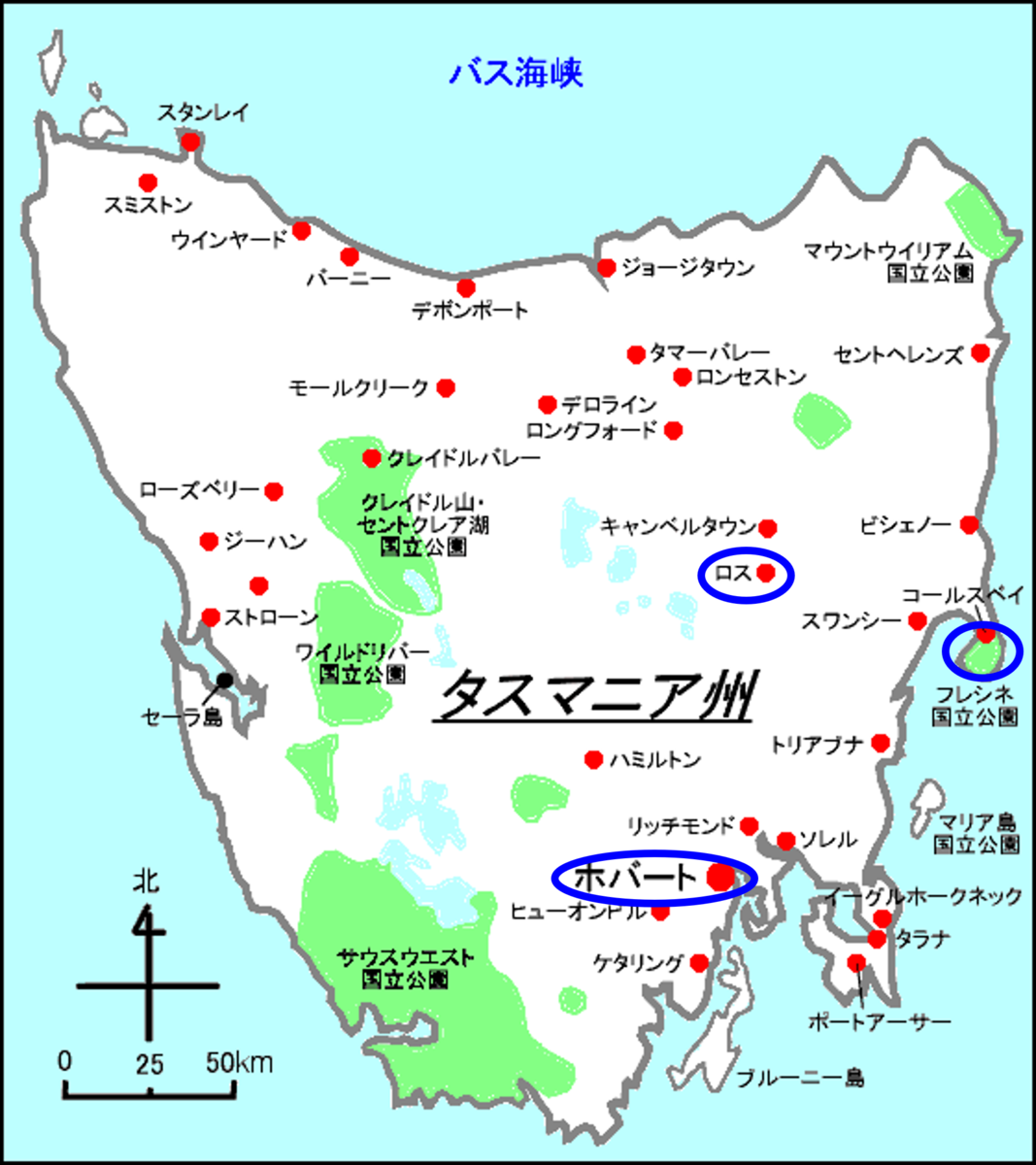 本来は、タスマニア北部にあるホバートと並ぶもう一つの都市、ローンセストン(Launceston)を目指したかったのですが、ワイングラスベイに時間を費やしすぎたので、断念。とはいえ、北海道を少し小さくしたような大きさの島なので、もともと無謀?な計画だったかもしれません。
