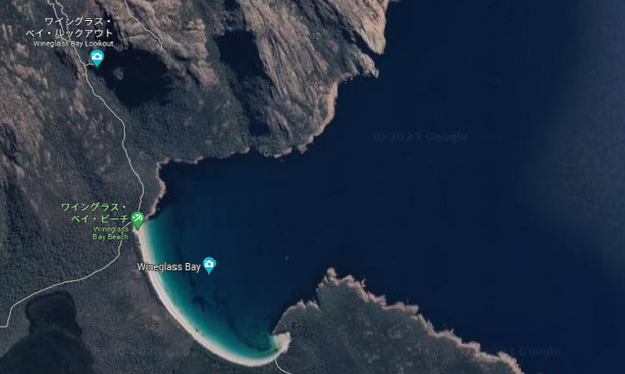 ↓ルックアウトからのワイングラスベイはこんな感じに見えます。