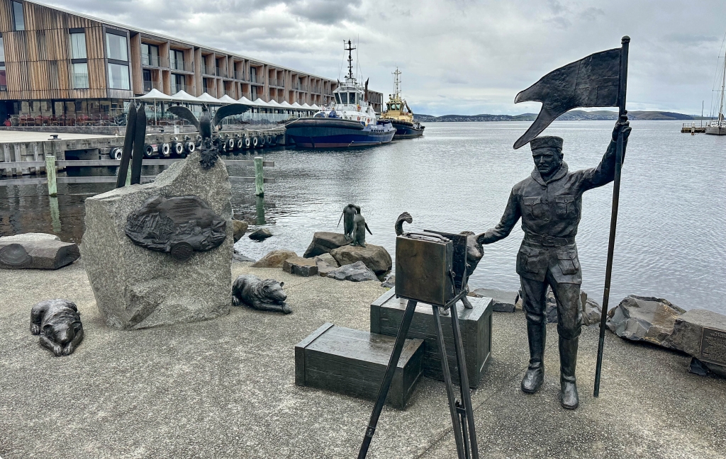↓後で知りましたが、この銅像は、オーストラリアで初めて南極越冬をした物理学者および天文学者であるルイ・チャールズ・ベルナッキという人物のようです。南極大陸に近いホバートですが、てっきり南極に初めて到達した有名なアムンセン(ノルウェー人)の像と思い込んでいました。