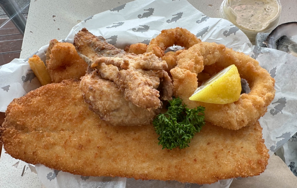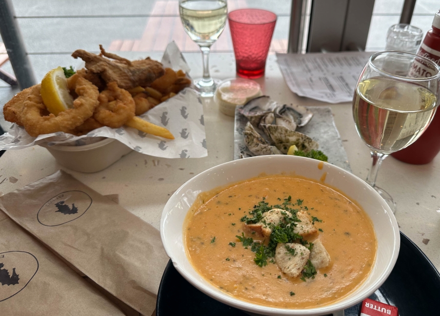 昼食に選んだのが、本日のスープとフィッシャーマンズ・バスケット、そして念願のタスマニア産オイスターです!
