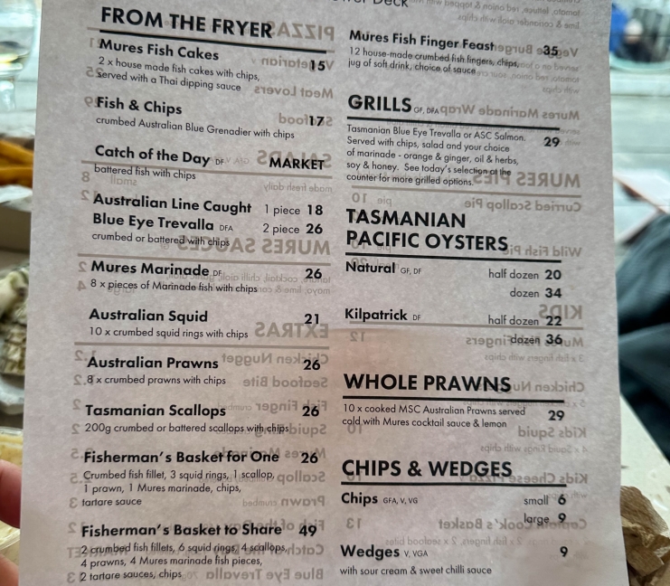 ちなみに上のオイスターのメニューのところにKilpatricというのが載っています。スマホの翻訳ソフトで訳してみると「キルパトリック」と出てきます(笑)。キルパトリックは、タスマニア州の伝統料理で、新鮮な牡蠣をベーコンとウスターソースで風味豊かに焼き上げた料理のようです。