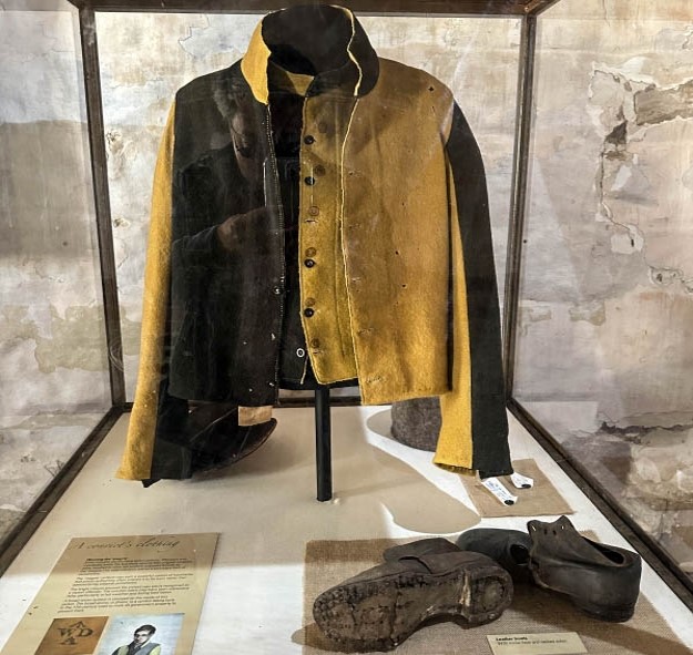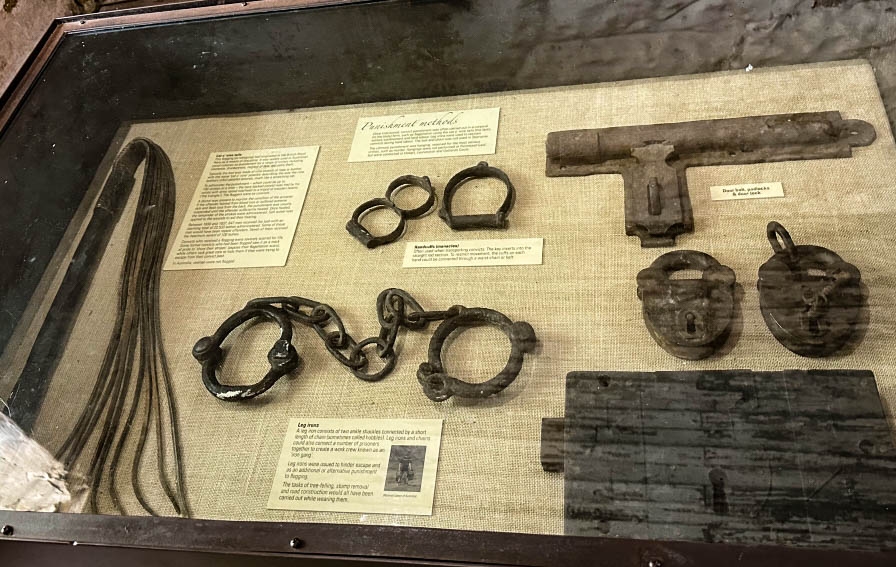 内部には、拘束具や鞭、囚人服と靴等が展示されています。