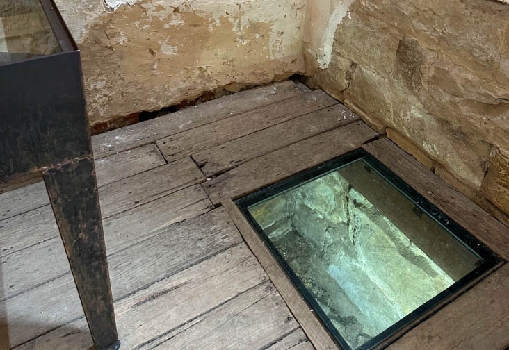 ↓面白いのが、脱獄に使われてた穴がガラス張りになっていますが、そのまま残されています(脱獄犯は直ぐにつかまったようです)