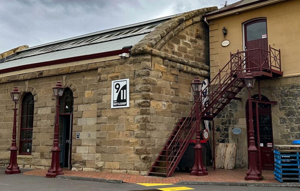 ↓ホバート市内にあるレンガ造りのワインショップ”9/11 Bottle Shop”です。