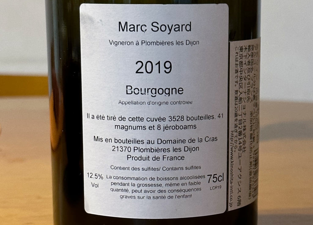 SO2無添加ということで、早めの抜栓でしたが、酸の強さは、ブドウが早摘みなのか、マロラクテティック発酵(MLF)が軽い(短い)のか、SO2無添加の影響か?はわかりません。ドメーヌ・クラを飲んで期待が大きかったのですが、少なくとも自分の好みではありませんでした。