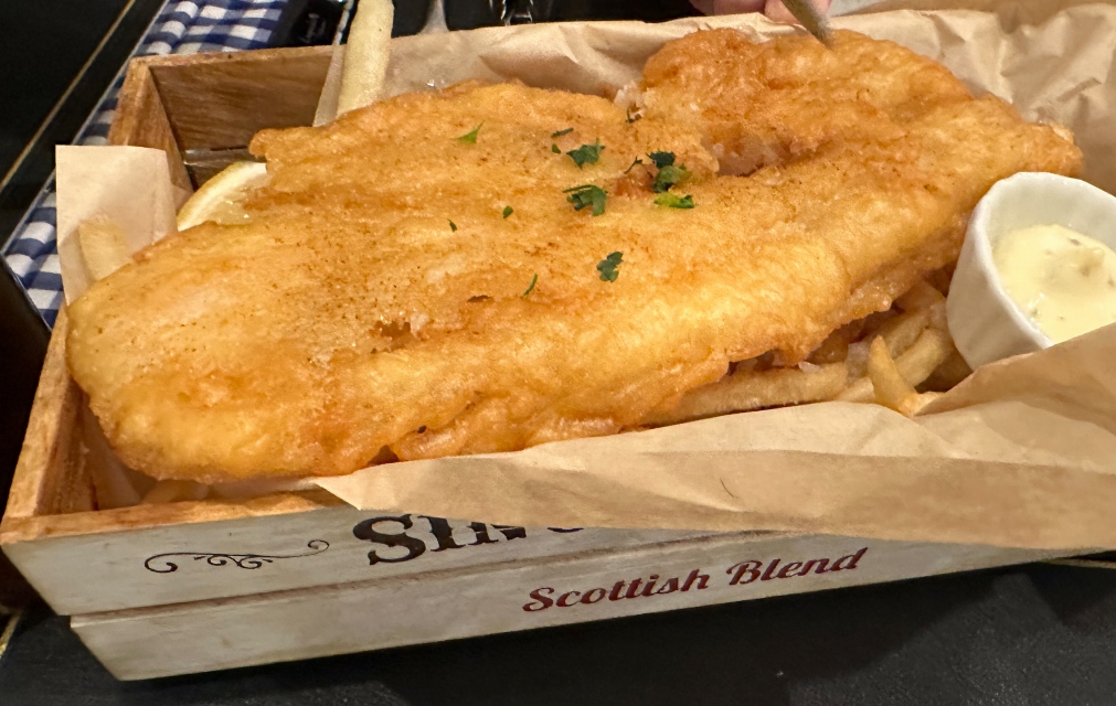 イギリスには行ったことないので本場のものは食べたことがありませんが、カナダやオーストラリアでは、結構ポピュラーでした。ただ、それらに比べて、圧倒的に美味しいフィッシュフライです。厚くなく柔らかな衣とスパイス感が絶妙です。
