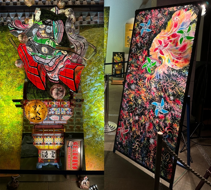 津軽フェアのイベントが開催さてており、ねぶたのミニチュアの展示やねぶた表現師によるアート作品作成の実演が行われていました。
