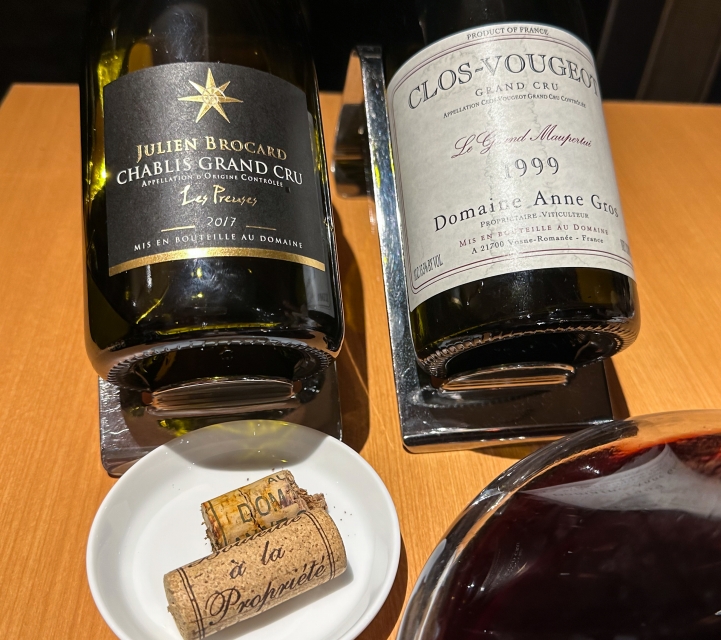 ジュリアン・ブロカールのシャブリ・グランクリュ・レ・プリューズ2017とアンヌ・グロのクロ・ヴージョの1999です。