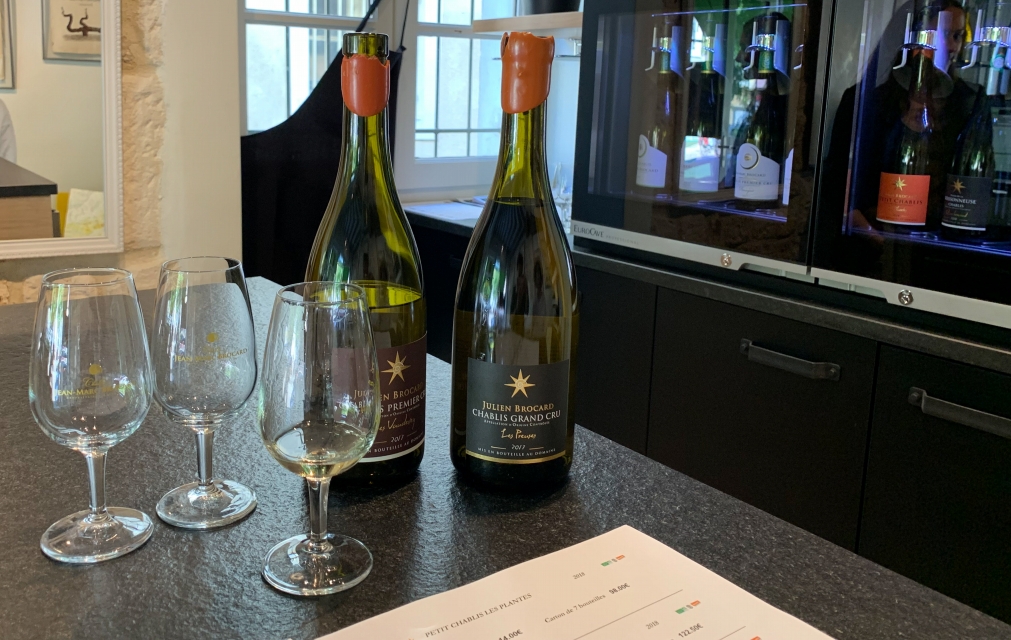 このワインは、シャブリの街中にあったジャン-マルク・ブロカールのセラードアで購入しました。