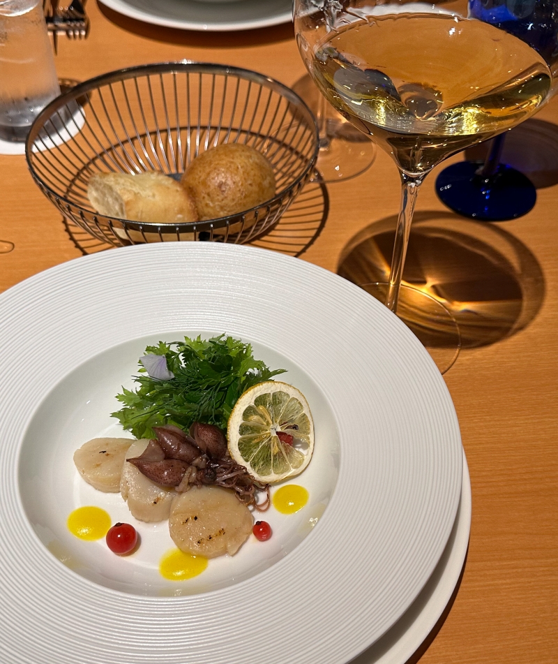 フレンチで、まさかのホタルイカです笑。あん肝と並んで、果実味の強いワインには絶対合わない食材のイメージがありますが、これは、臭みはほとんど感じられず、このワインとの相性も悪くはありません。