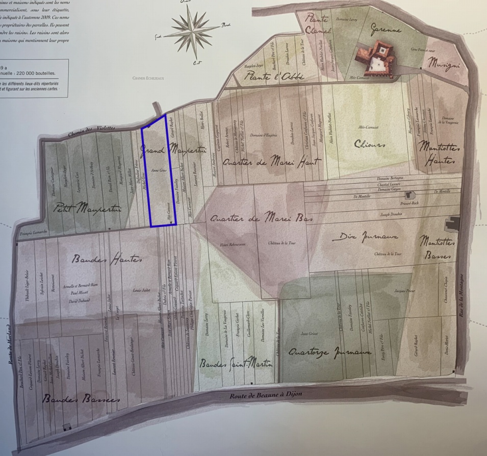 ブルゴーニュのグランクリュとしては、最大の面積を誇り、80あまりの所有者が存在するクロ・ヴージョですが、アンヌ・グロが所有するのは、北部(斜面上部)のル・グラン・モーペルテュイという優良な区画です。