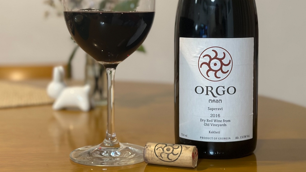 ジョージアの代表的産地であるカへティ(Kakheti)のサペラヴィ種からのクヴェヴリによる伝統的製法のワイン「ORGO Saperavi」です。濃厚でタニックなイメージのあるサペラヴィですが、このワイン、確かに色は濃いのですが、飲んでみると意外にも柔らかく、エレガントさを感じさせる赤ワインでした。