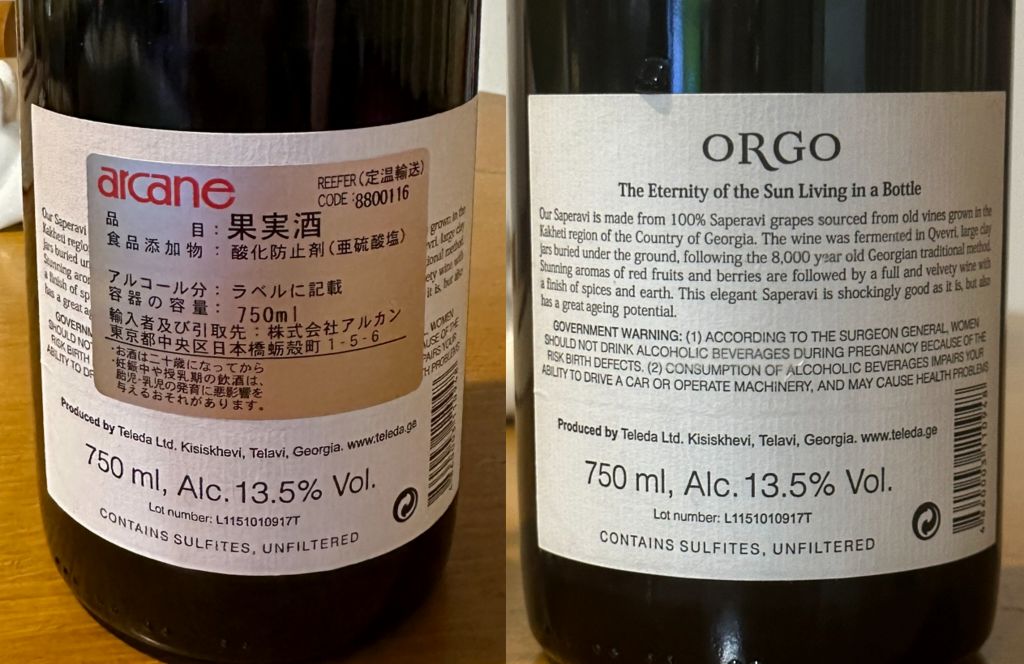 今回のORGOは、オークが殆ど感じられず、その分、複雑さよりも、柔らかな果実味が際立って感じられます。クヴェヴリ醸造のワインは、熟成に樽を使うこともあるようですが、このワイン、樽熟成しているのか不明ですが、味わいからは、ステンレスタンクか別のクヴェヴリに移して熟成させているのではないかと思われます(あくまで想像ですが…)