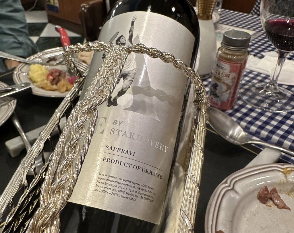 このワインはウクライナ産のサペラヴィで、STAKHOVSKIというウクライナのプロ・テニスプレーヤがプロデュースしたワインのようで、同じ横浜のインポーターさんが輸入しているようです。