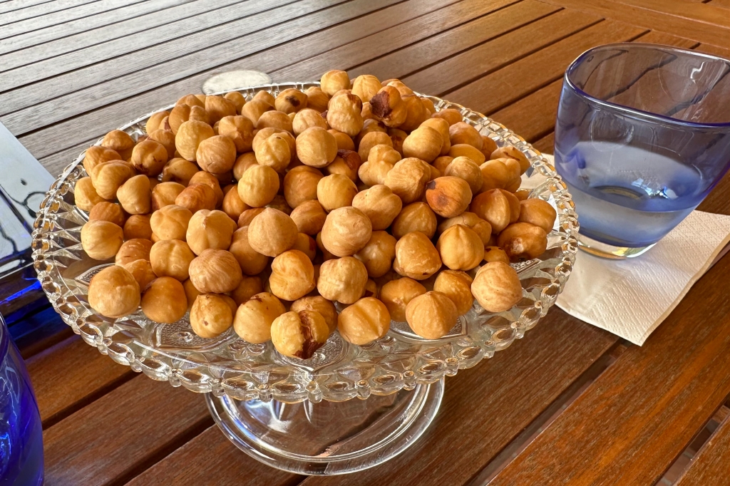 まずコーヒーとヘーゼルナッツで歓迎していただきました。トスカーナは、オリーブの産地でもありますが、こちら、ピエモンテは、ヘーゼルナッツで有名なようです。