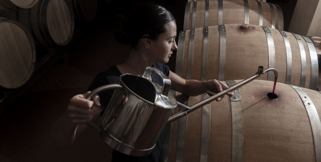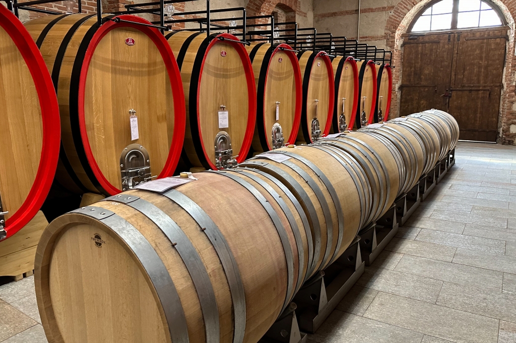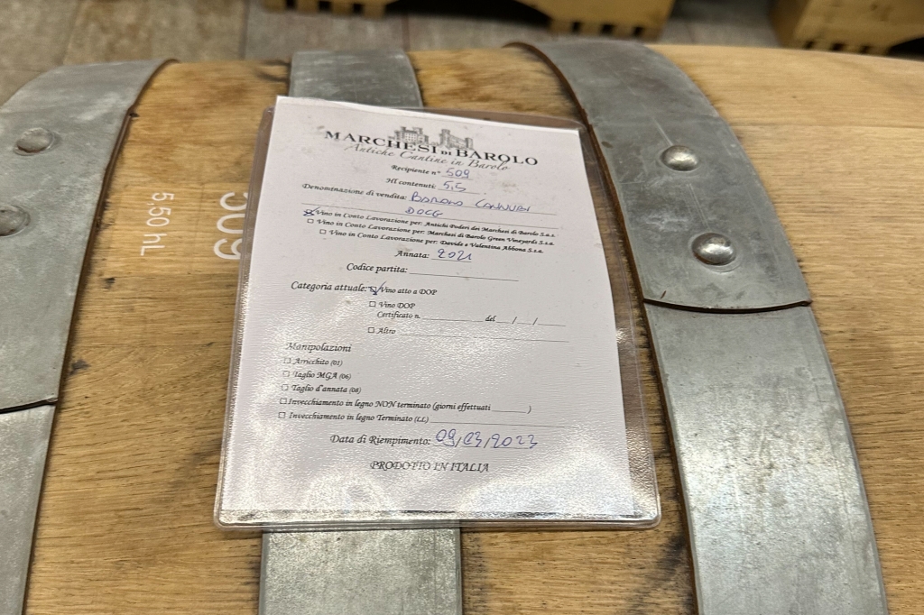 ↓トノーで熟成中の2021年のバローロ・カンヌビ