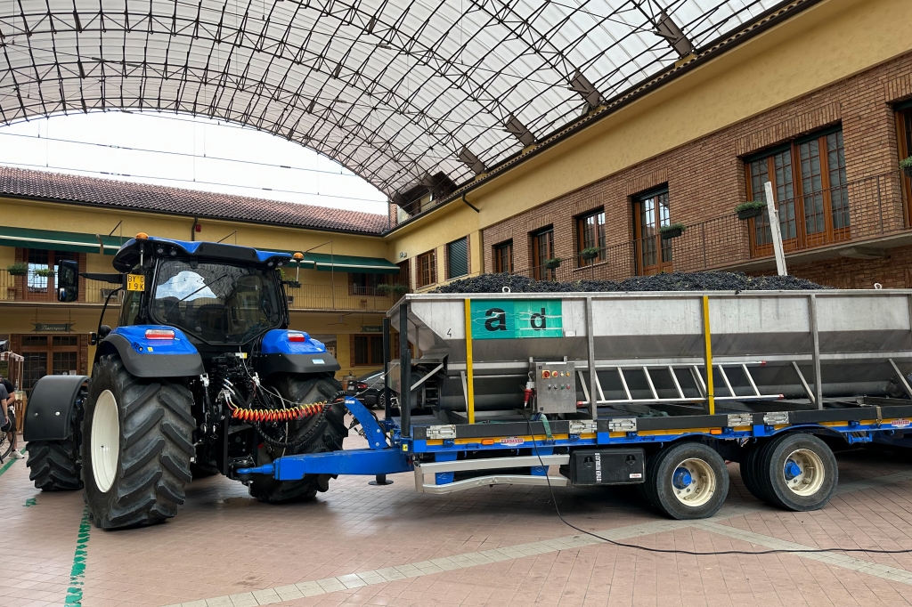 ↓収穫を終えたトラックが、駐車場を塞いでいました。ドルチェットかバルベーラだと思います。