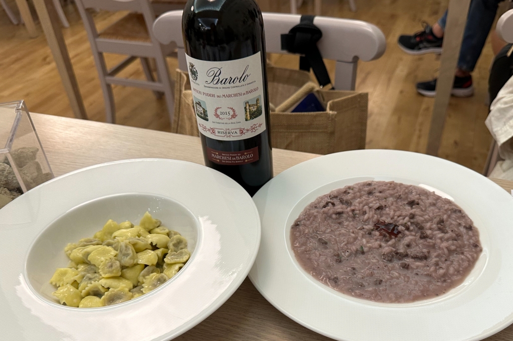 ↓右側の皿ですが、バローロで煮込んだリゾットです。