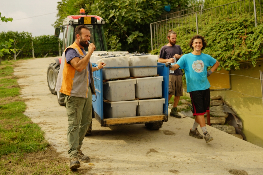 ↓ちょうどこの日のバルベーラの収穫を終えたところでした。