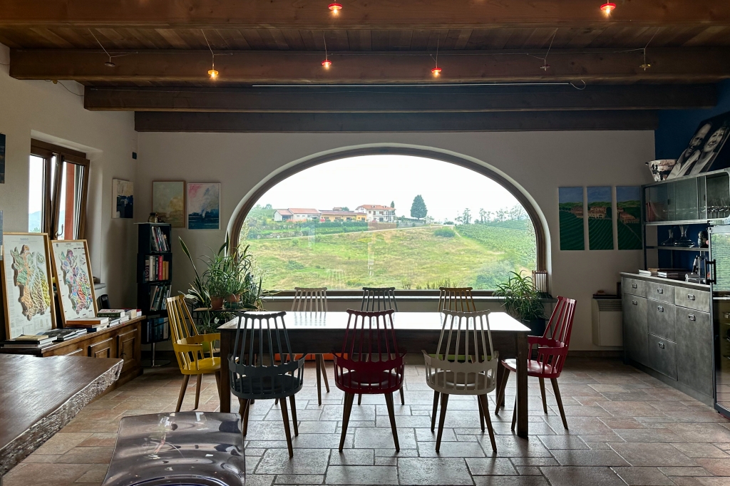 ↓窓から畑が見える試飲室です。リビングのようで、いかにも家族経営のワイナリーらしい雰囲気です。