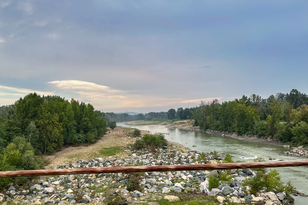 ↓帰路で通ったタナロ川です。この川がもたらす砂質の土壌が、バルバレスコのワインを優しいものにするとも言われています。