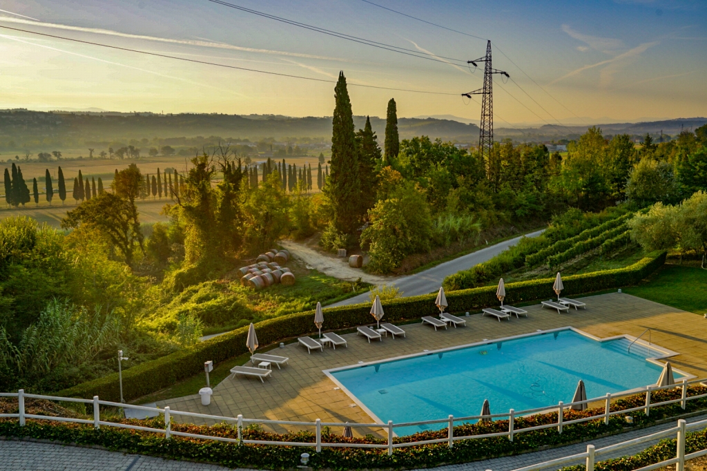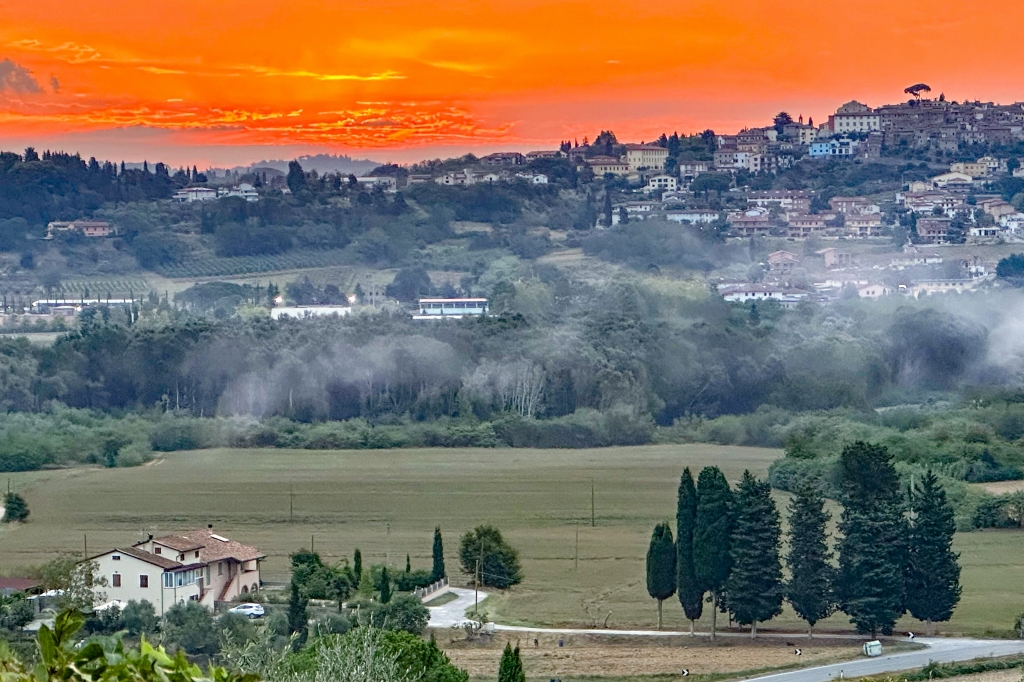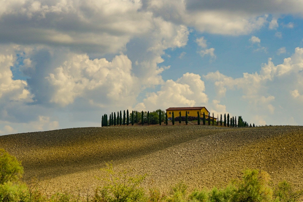 夕日があたると様々な光景を見せてくれます。糸杉も見られ、ただここに滞在してこの風景を見ているだけでもトスカーナらしい風景を楽しめます。