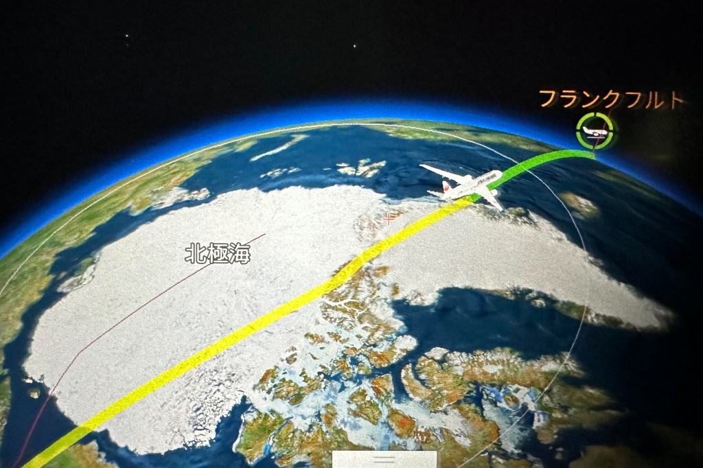 かなりの距離、北極海上空を飛びますので、晴れていれば、窓の外、眼下には決して行くことのないであろう北極海の氷河が長い時間楽しめます。