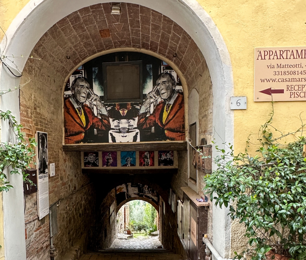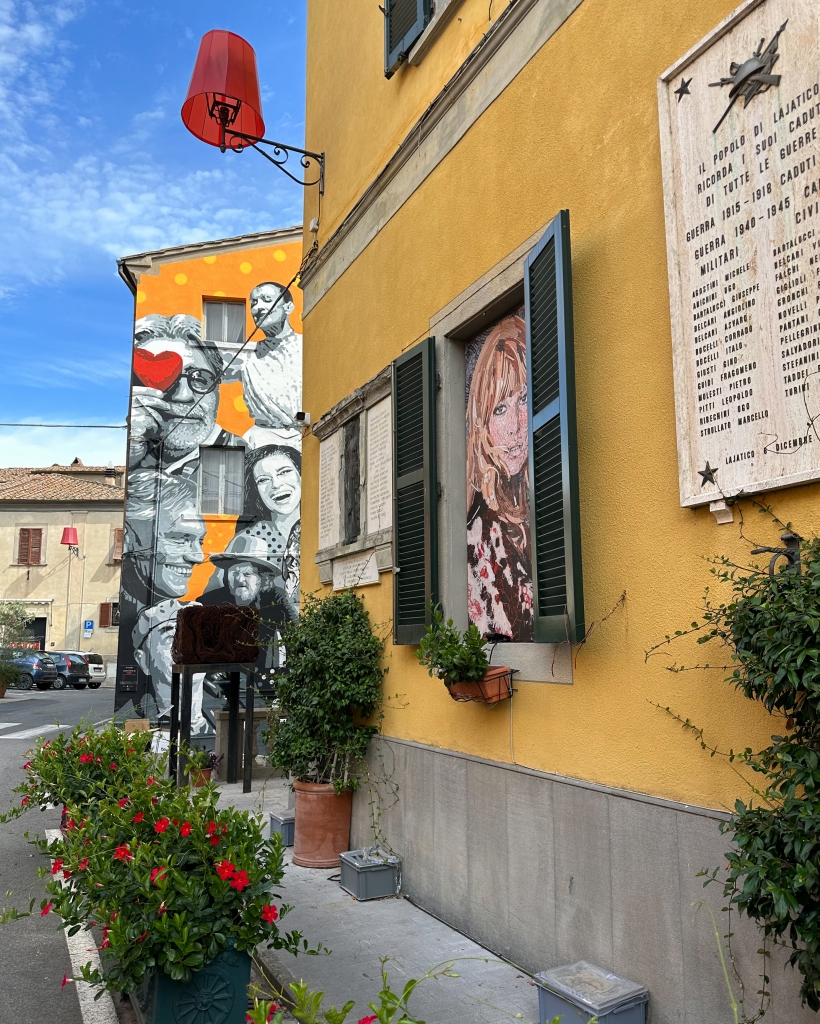 この村の見どころは、アンドレア・ボチェッリ生誕の地ということだけでなく、この村の建物に描かれた様々なアート作品にもあります。