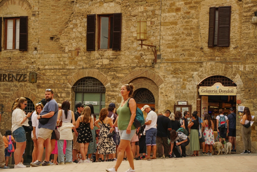 ↓ドゥオーモ広場に長い行列ができている店があります。世界チャンピオンのジェラート屋です。100m近い列でしたが、回転が速く、30分ほどで買えました。