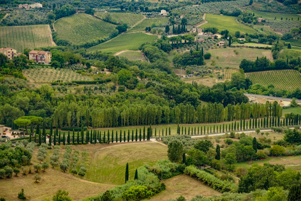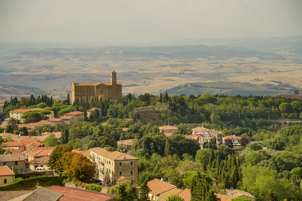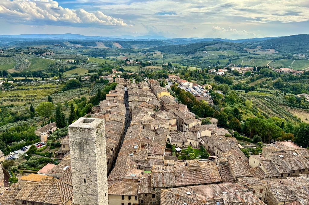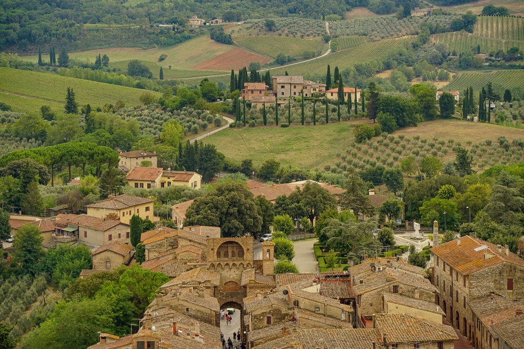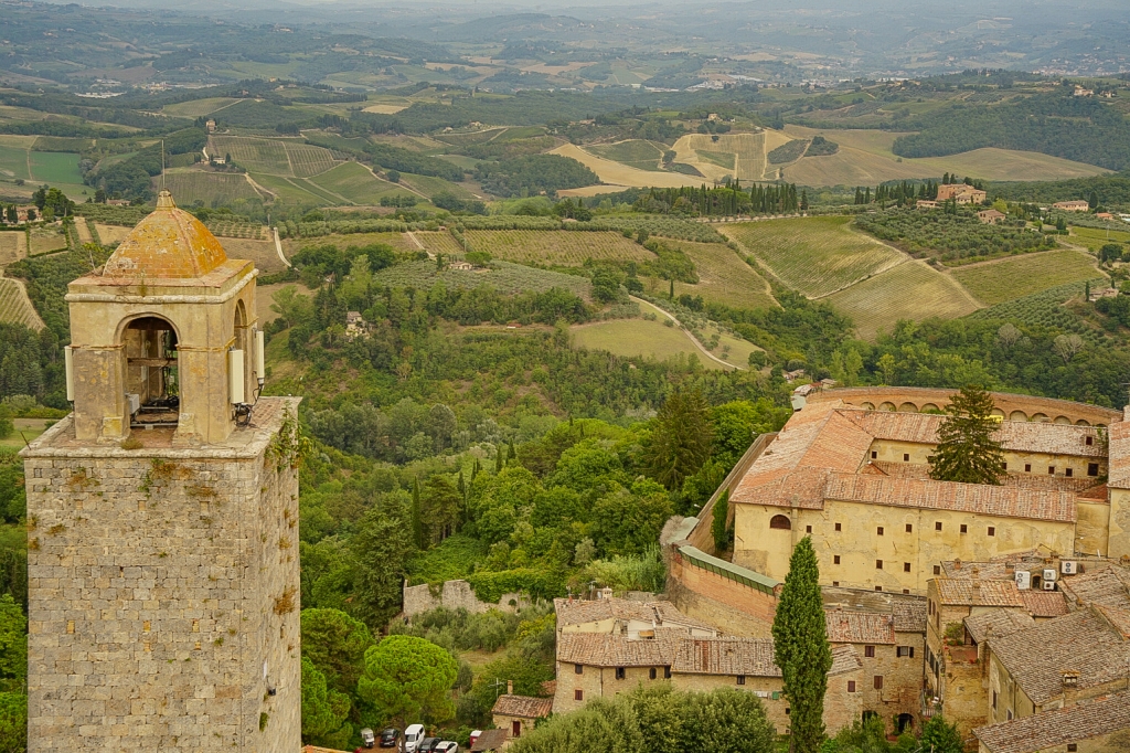 サン。サン・ジミニャーノの街全体、トスカーナらしい田舎風景、オルチャ渓谷まで眼下に広がります。ここからの素晴らしい風景は一見の価値があります。