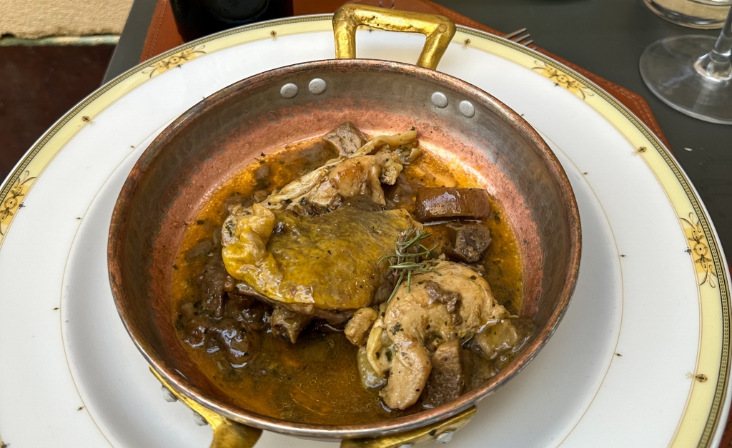 ホロホロ鳥のポルケッタといただきました。ポルチーニ茸が入っており、香り高く美味しいです。軽い白ワインでは負けそうですが、厚みのあるヴェルナッチャ ディ サンジミニャーノとの相性はGoodです。