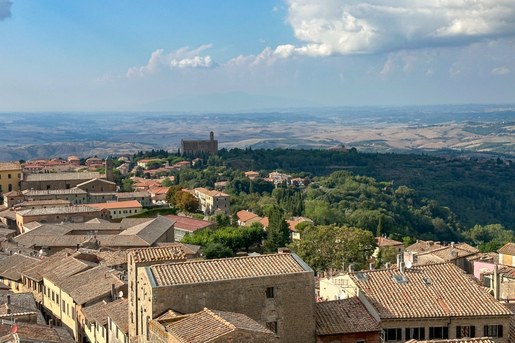 屋上からは、サン・ジミニャーノほどのスケールではありませんが、トスカーナの美しい風景が広がります。