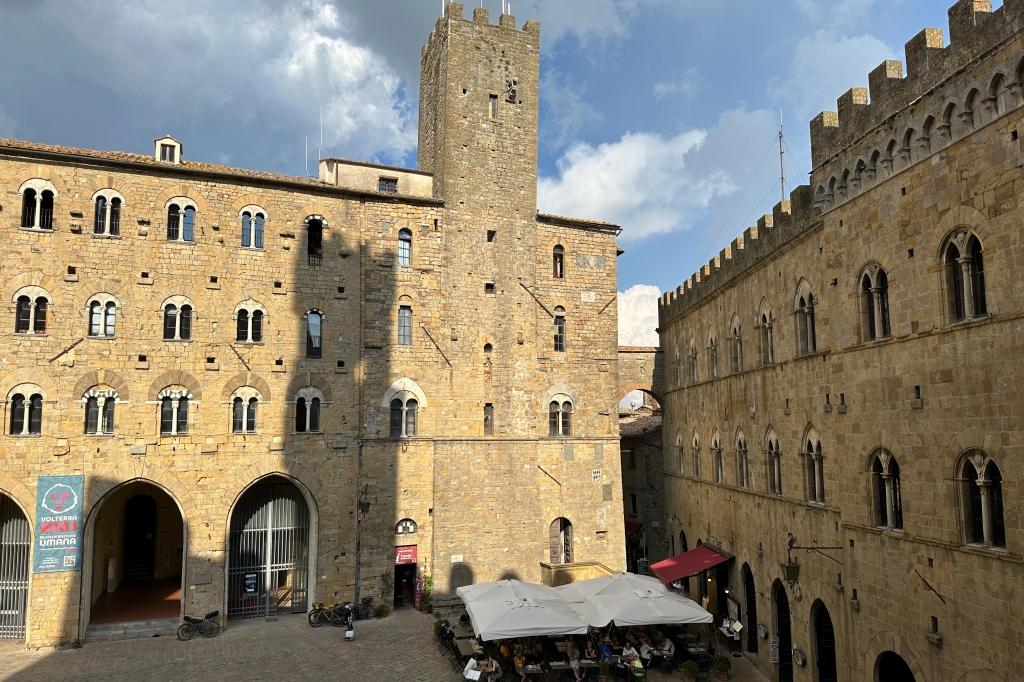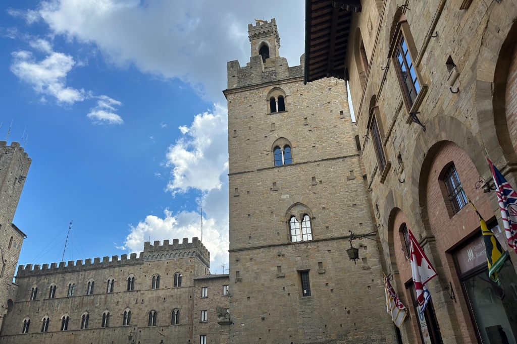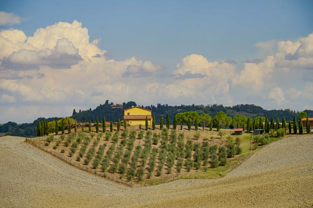 ボルテッラチェチーナとエーラという2つの渓谷に挟まれた台地に位置していますが、ここに向かう途中、至る所にトスカーナらしい丘の上に糸杉に囲われた家やオリーブ畑を見ることができます。