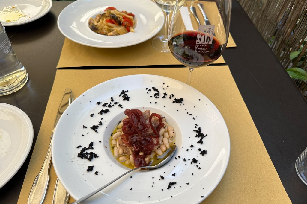オルチャ渓谷を見下ろせる要塞都市モンタルチーノに立ち寄りました。シエナやサンジャミーに比べると観光地としての知名度はやや低めですが、ここは、ワイン好きにとっては、外せない銘醸赤ワイン、ブルネッロ・ディ・モンタルチーノの産地です。