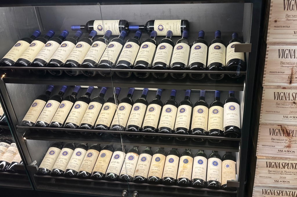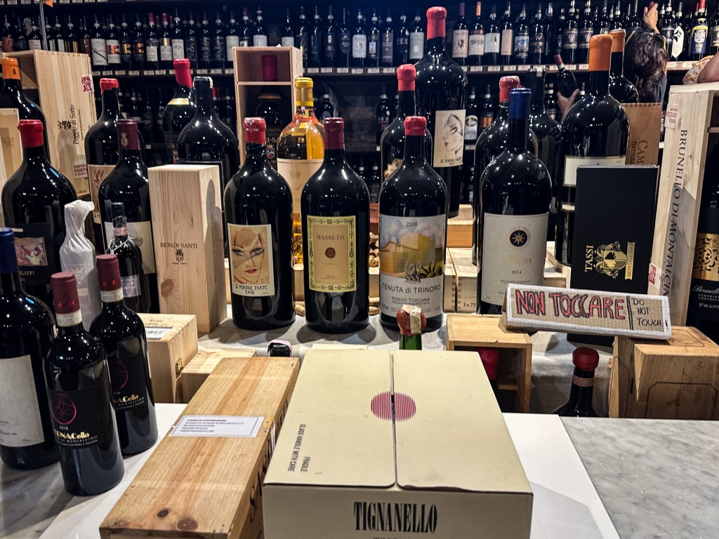 塔の麓に大きなエノテカがあります。ここの品揃えが凄い!イタリアの銘酒が古酒含めてズラリとならんでいます。