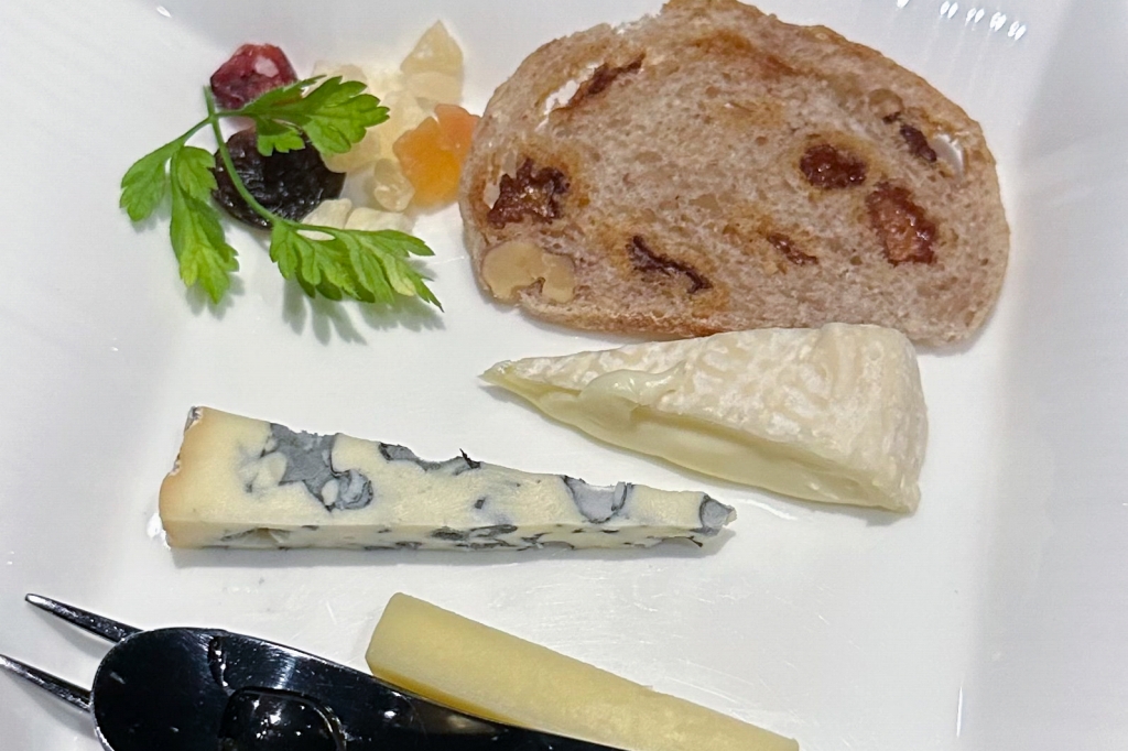 ↓こちらもアミューズ? 三種のチーズ盛り合わせ ウオッシュは、ピエダングロワです。ハードは、コンテ?、ブルーは、フルムダンベールでしょうか?