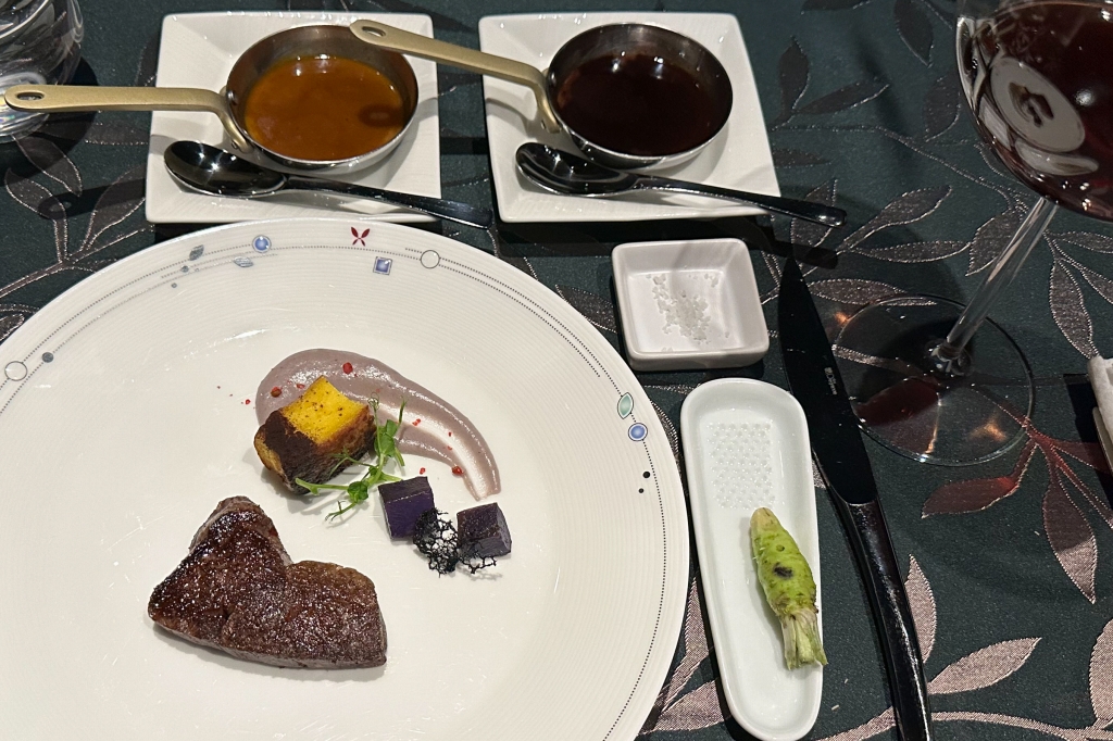 ↓相州牛フィレステーキ 赤ワインソースとエシャロットソース+生山葵と岩塩です。