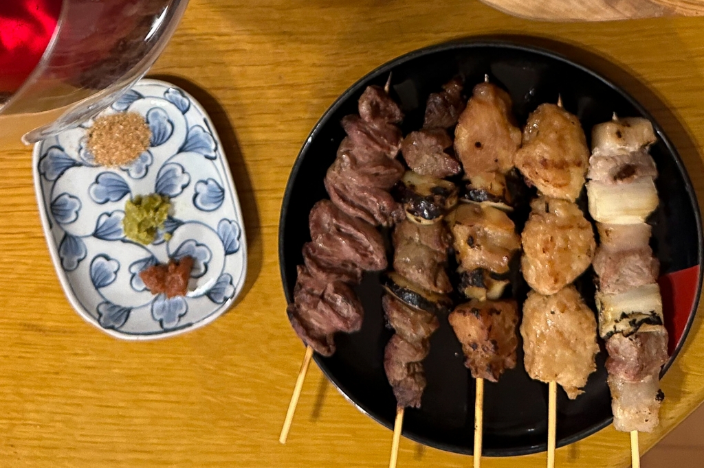 ちなみに、このワインには、スモーキーなハツと濃厚な牛とニンニク串がピッタリでした。