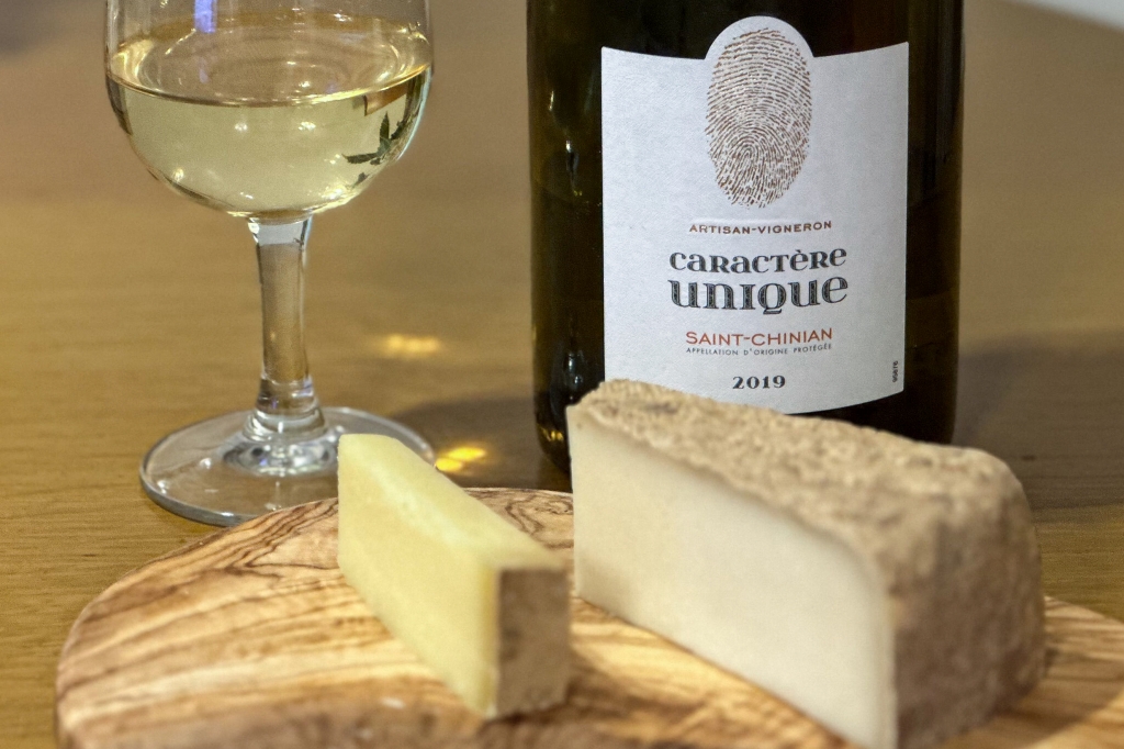 ちなみにこれらのチーズは、同じ日に飲んだこんな白ワインが良く合いました。珍しいサンシニアンの白、「フォンカリュ カラクテール ユニック サン シニアン ブラン 2021」です。酸が控えめで、柔らかい果実の甘み、僅かな酸化のニュアンスのアクセントがありますが、ワインが主張すぎない分、チーズと良く合います。